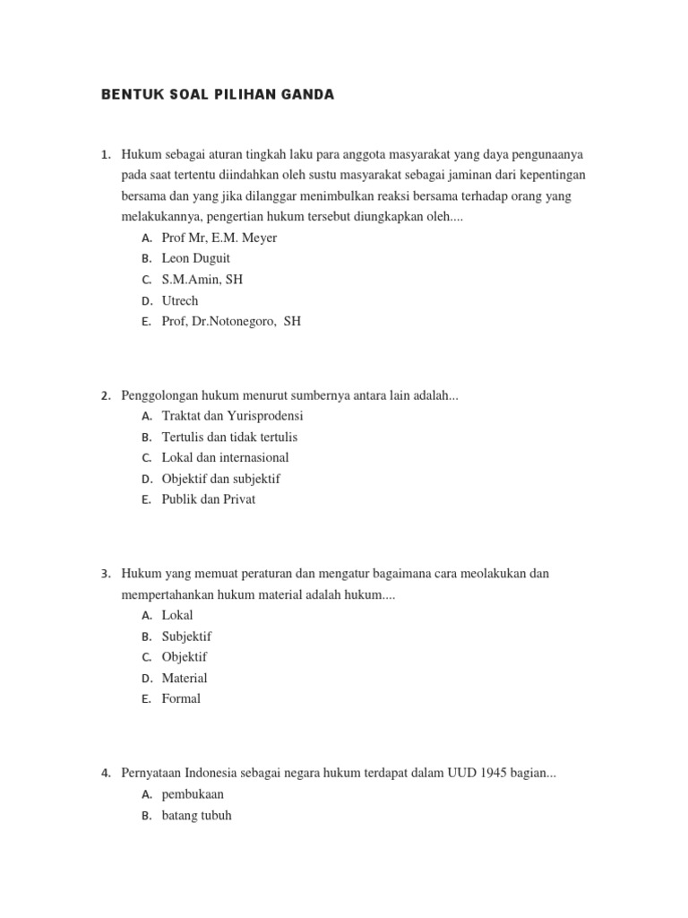Contoh soal pilihan ganda dan jawaban tentang perlindungan dan penegakan hukum di indonesia. Maybe you would like to learn more about one of these? We did not find results for: Check spelling or type a new query.