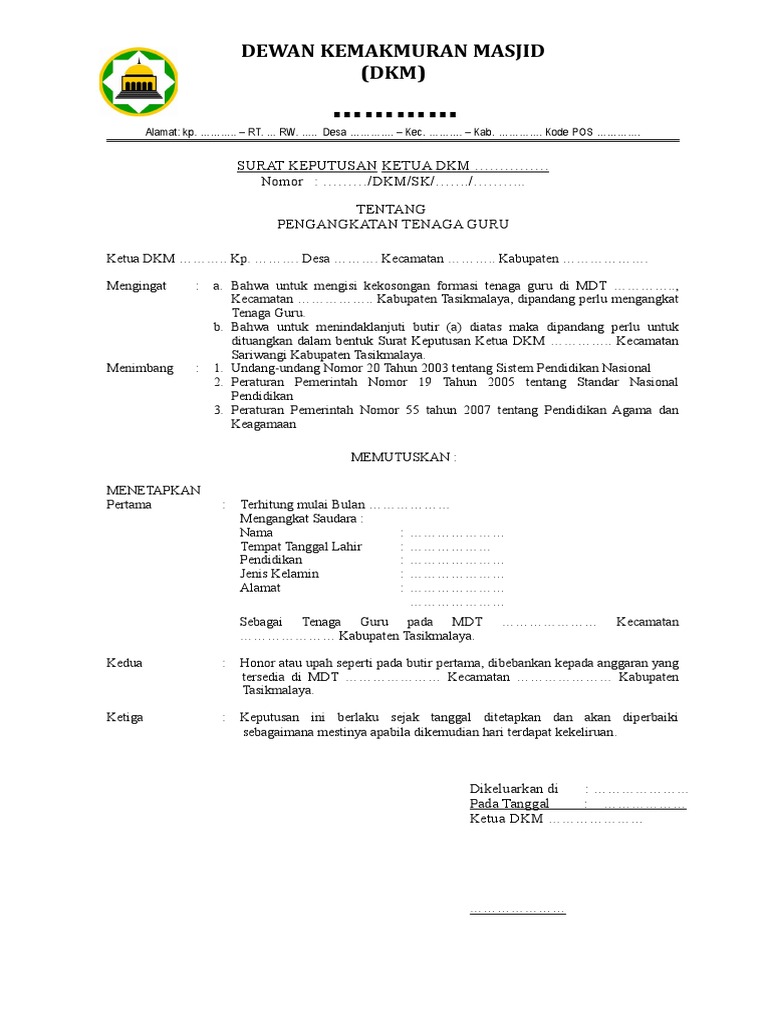 Contoh sk dkm dari kepala desa guru ilmu sosial. Sk kepala desa tentang takmir masjid. Contoh sk remaja masjid dari kepala desa guru ilmu sosial. Contoh sk susunan pengurus majelis taklim. Sharedownload surat keputusan pengangkatan kepala madrasah diniyah takmiliyah ( madin ) mdt mdta dta dtw dtu dari yayasan dan takmir masjid dalam format doc ms word bisa diedit dan diubah sesuai dengan kebutuhan lembaga.